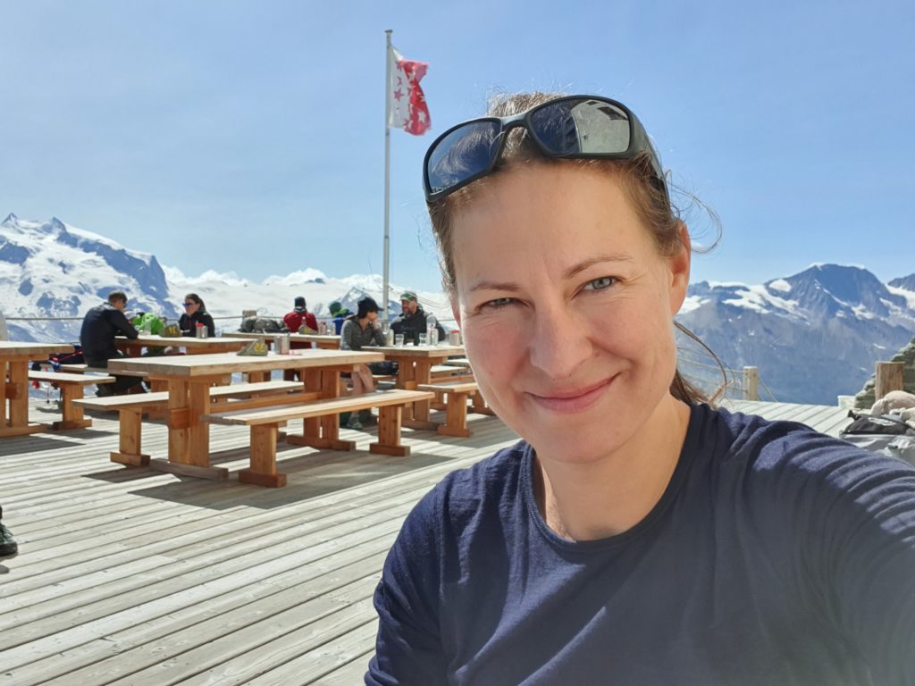 Wir kamen als erste Seilschaft gegen 11:00 wieder bei der Hörnlihütte an. Das letzte Mal Abseilen an der Einstiegsstelle, diesmal in vollem Sonnenschein. Wir wurden von den Tagesgästen, die auf der Terrasse in der Sonne saßen, neugierig beäugt. Der Hüttenwart gratulierte uns zur erfolgreichen Gipfelbesteigung – „Vielen Dank – aber ich brauche jetzt erst mal unbedingt eine Rivella!“ – und später kam sogar noch ein Suure Most – (jawoll – mit Alkohol!) – dazu!! Mit Essen hatte ich immer noch etwas Schwierigkeiten. Nachdem ich mich erschöpft auf die Holzbank niedergelassen hatte, dachte ich, ich könne nie wieder von ihr aufstehen. Ich habe meine Beine noch tagelang nach dem Matterhornaufstieg gemerkt. Aber das war es wert!