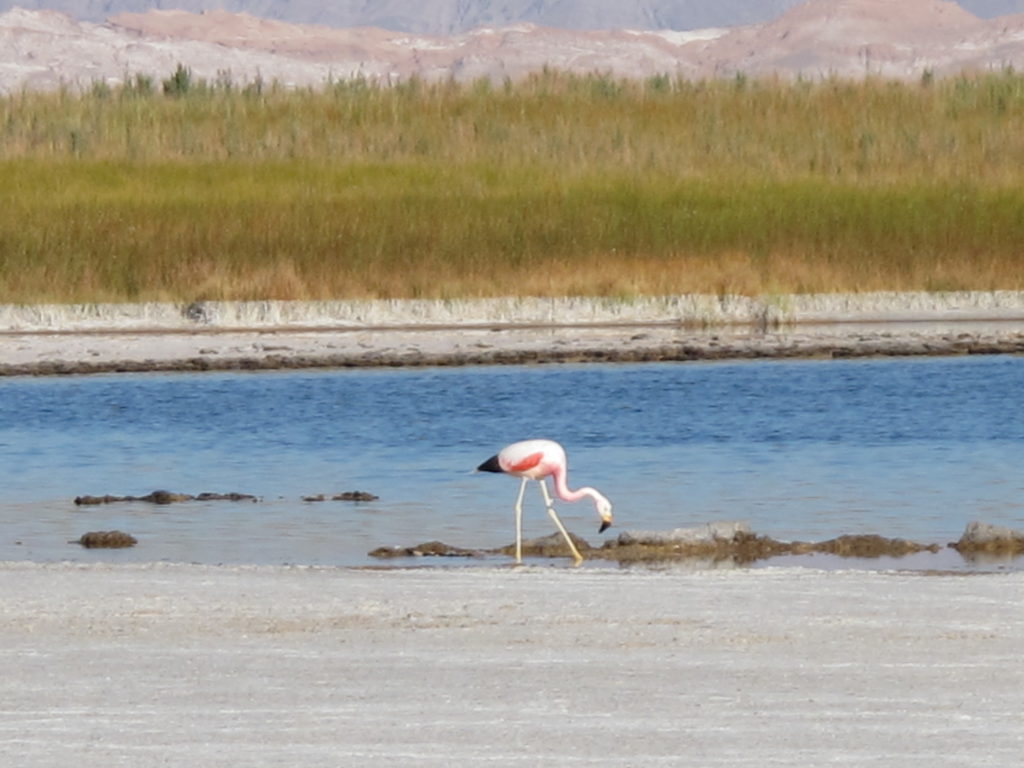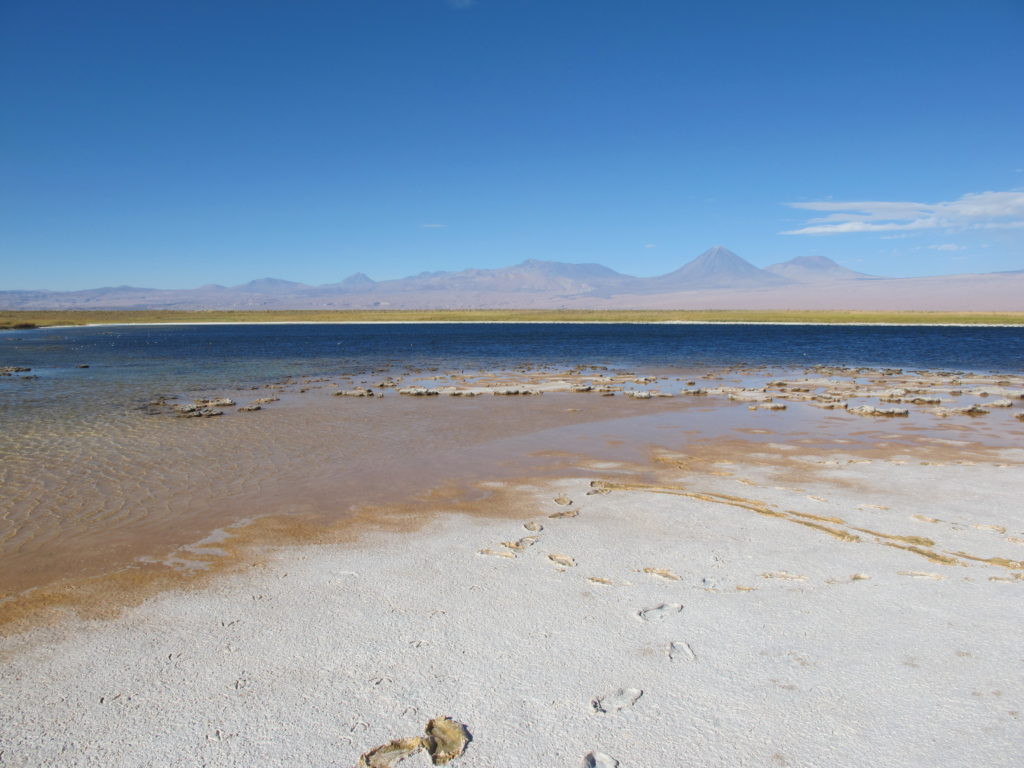 Noch vor wenigen Minuten sind wir durch die schlammig-klebrige Konsistenz des nassen Salzes gewatet – Menschenspuren neben Tierspuren. Haben in der Salzsole gebadet wie im Toten Meer. Morgen bei Sonnenaufgang erwarten wir die Flamingos. Ich habe meinen Wecker schon gestellt.
