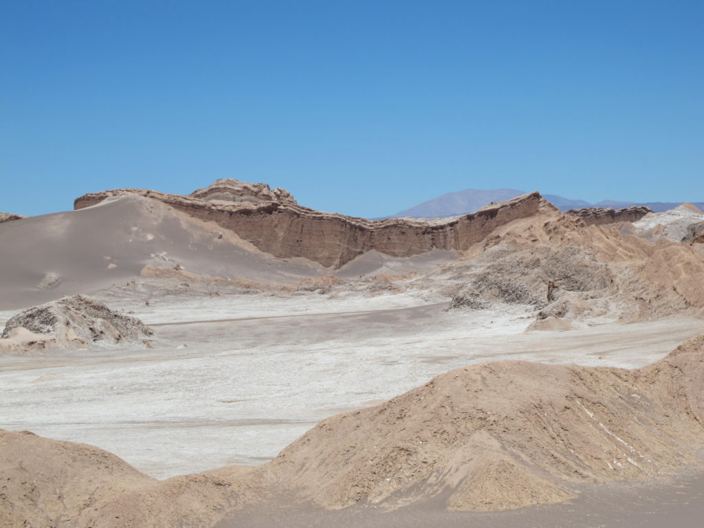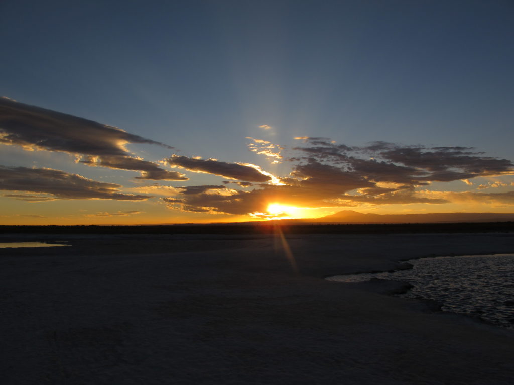 Sobald die Sonne weg ist, zeigt sich ein Sternenhimmel, wie er nur an wenigen Orten der Welt zu sehen ist. Und einer davon ist hier. In der trockensten Wüste der Welt, der hochgelegenen Atacama de Chile, auf über 2400 Meter über dem Meer! Erhaben und wunderschön! Das NASA Obeservatorium haben wir vorhin beim Vorbereiten auf einem Hügel gesehen.
