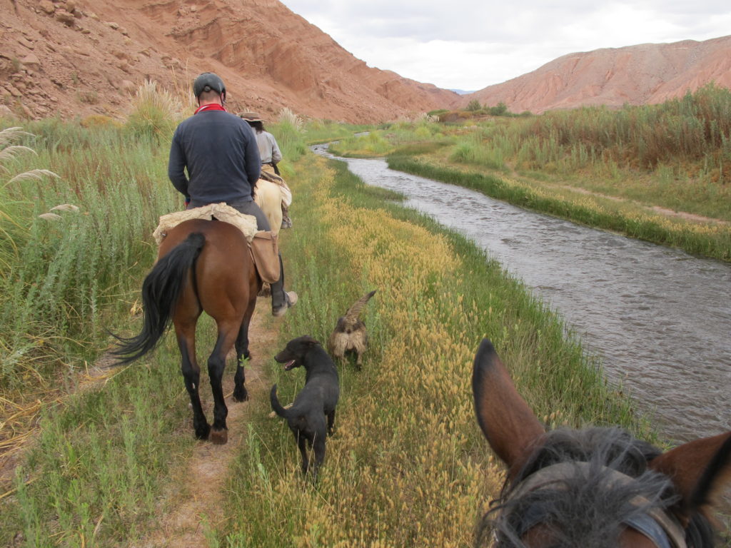 Auf den staubigen Wegen müssen wir auf kleine Löcher aufpassen. Eine Mäuseart baut unterirdische Gänge und mit dem Pferd einbrechen kann gefährlich werden, weil sie stolpen oder gar stürzen könnten.