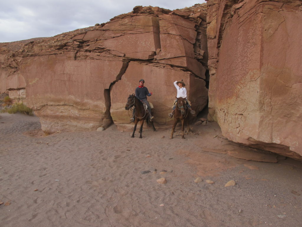 Auch durch Canyons mit alten Felsinschriften sind wir gekommen. Wir ließen die raue Landschaft auf uns wirken. Die Pferde kratzen sich an den Felsen am liebsten das Hinterteil.