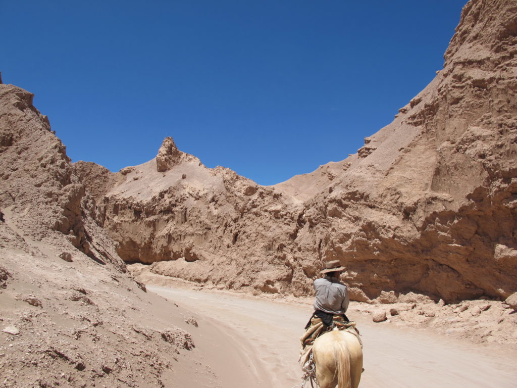 Wieder angekommen in San Pedro de Atacama, heißt es, Abschied nehmen. Sechs Tage waren wir auf dem Pferderücken unterwegs, haben die Abende am Lagerfeuer und die Nächte im Zelt verbracht. Der Staub läßt sich mit diesen bescheidenen hiesigen Duschen (Wasser muß sorgsam gespart werden) kaum vom Körper waschen. Aber das spielt eigentlich auch keine Rolle…..
